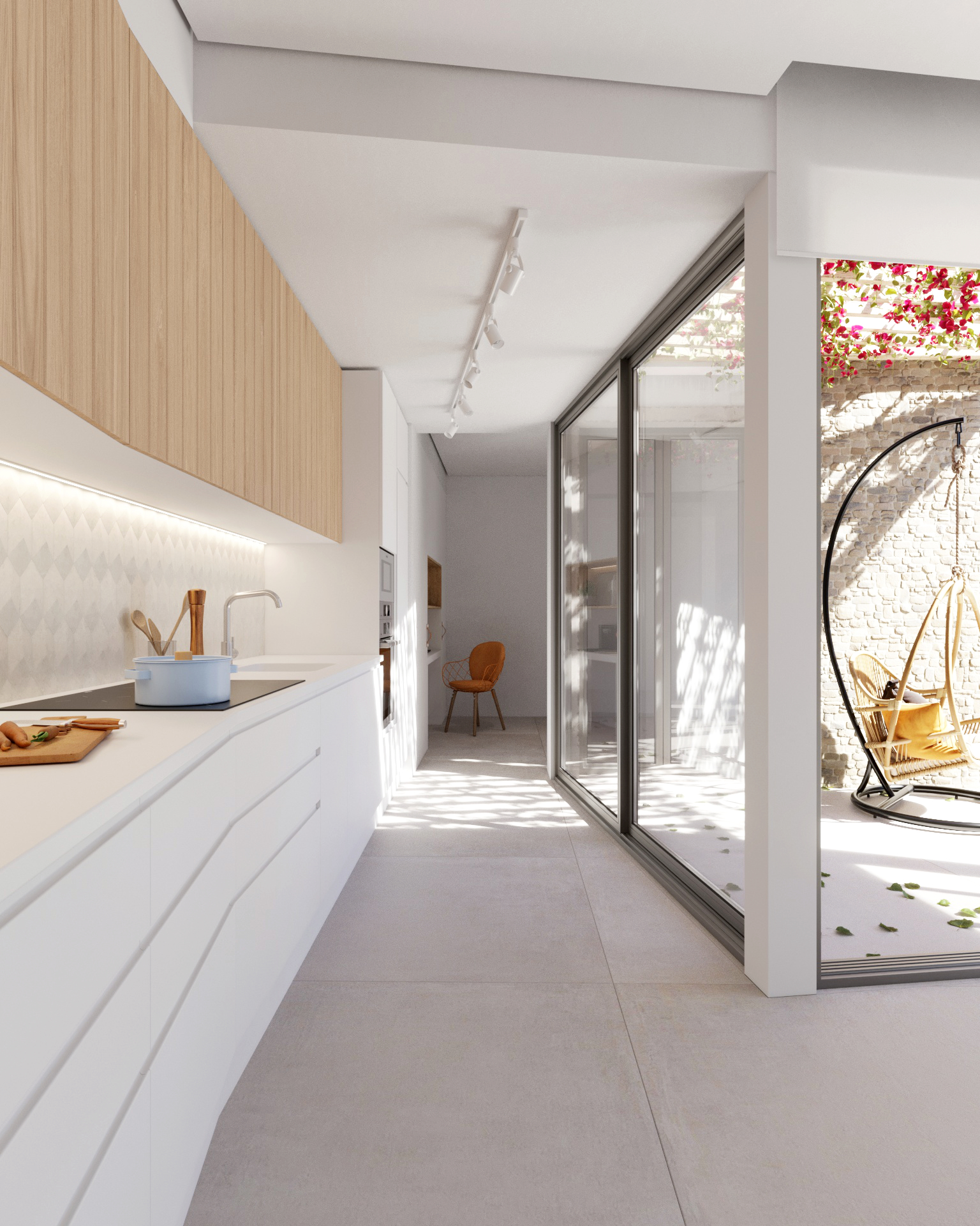 Na visualização deste projeto, a estratégia procurou destacar a relação entre arquitetura, luz e vivência quotidiana.