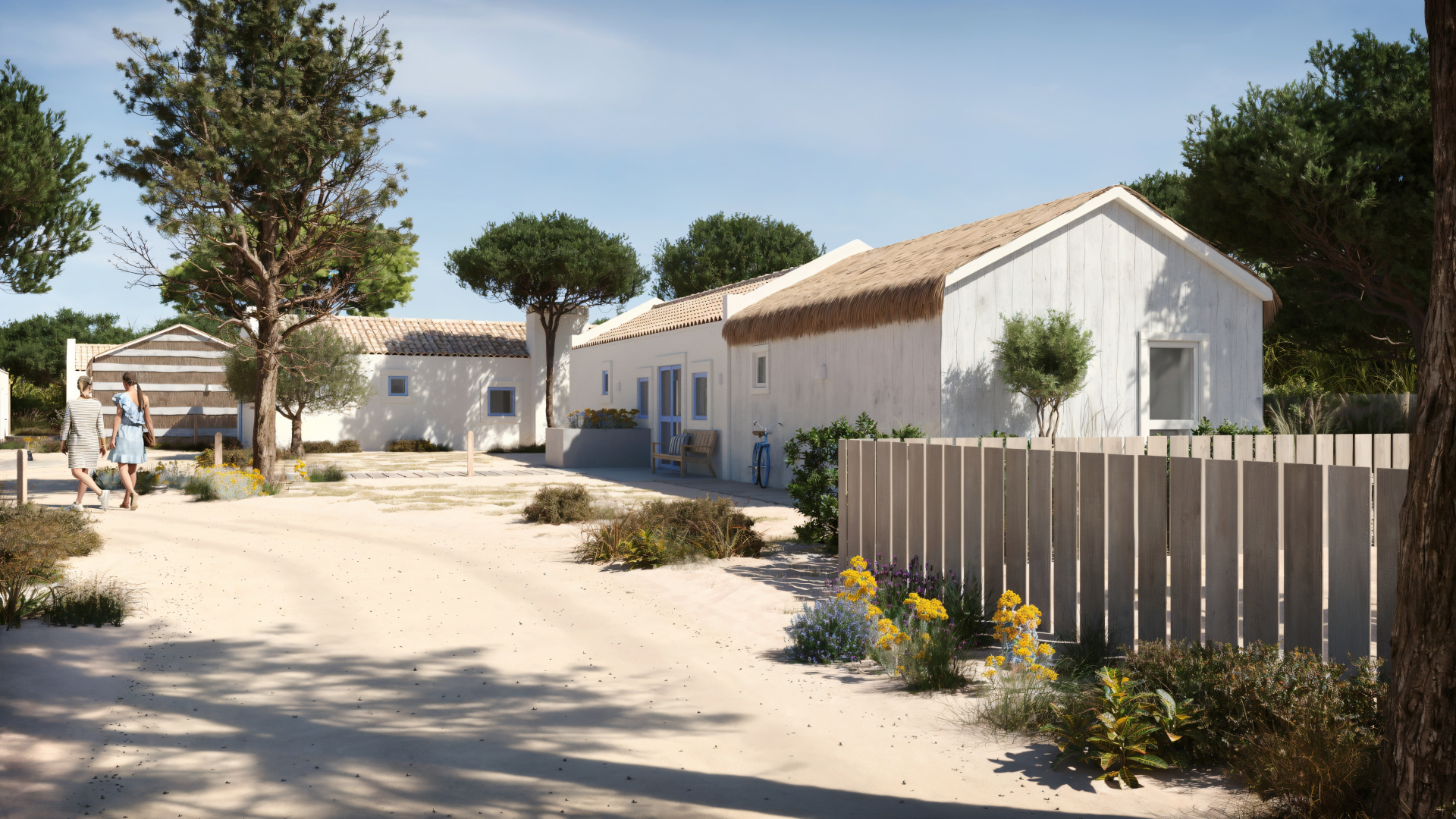 A estratégia visual centrou-se em valorizar a relação entre o conjunto edificado, os espaços comuns e a paisagem natural da Comporta. Para isso, foram exploradas perspectivas que permitem compreender a organização do aldeamento e a forma como os diferentes volumes se integram no ambiente envolvente como também o espírito do lugar — a luz suave, a relação com a paisagem e a experiência de habitar este ambiente.